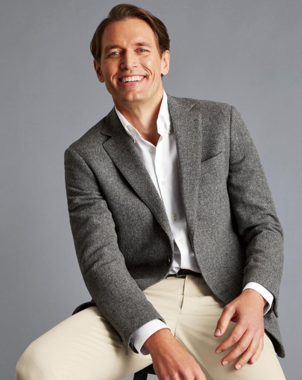 Men Textured Wool Jacket Taupe | Charles Tyrwhitt Blazers